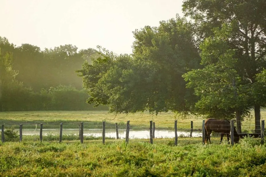 Apache Creek Ranch is situated in southeastern Grimes County between Plantersville and Dobbin on State Highway 105. The ranch is set up for a combination of hunting and recreational use, as well as a modest cow/calf operation. The ranch is approximately 60 percent pasture and 40 percent wooded with an excellent mix of mature pine and hardwood timber, including pecan and oaks species, as well as some younger pine timber. With the hayfield located in the rich soils of Caney Creek bottom, the upland pastures are predominately Bahiagrass and common Bermuda, providing excellent grazing for livestock. The meadows are spaced and surrounded to maximize serenity and edge habitat over much of the ranch.