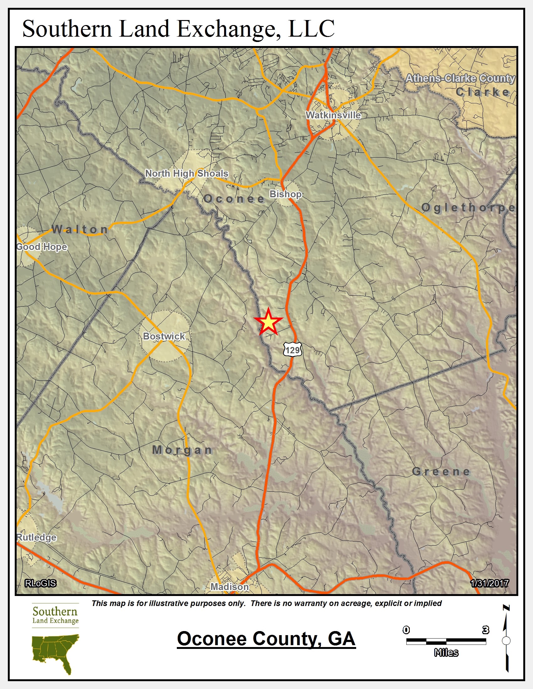 The property is accessed by a private drive (gravel). The property is only a 12 mile drive to Publix in Bulters Crossing. The property is ideal for the person or family desiring to escape to the peace and quiet of the country, while still being close to the city.