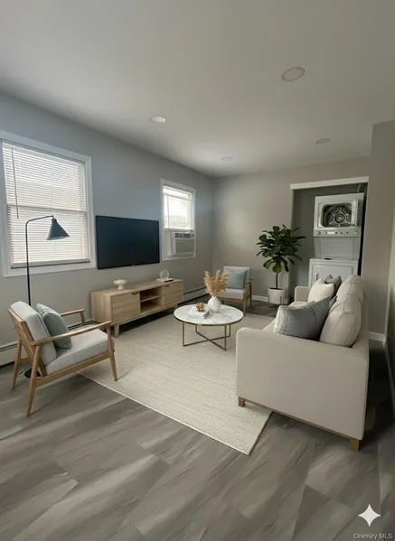 Beautifully updated 2-bedroom, 1-bathroom apartment located on the 2nd floor of a well-maintained home. This inviting unit features a modern kitchen, bright living area, and in-unit washer and dryer for your convenience. Heat and water are included. Enjoy two designated parking spots in the driveway and a location that offers quick access to nearby amenities, shops, and major roadways. A perfect place to call home-clean, comfortable, and move-in ready!