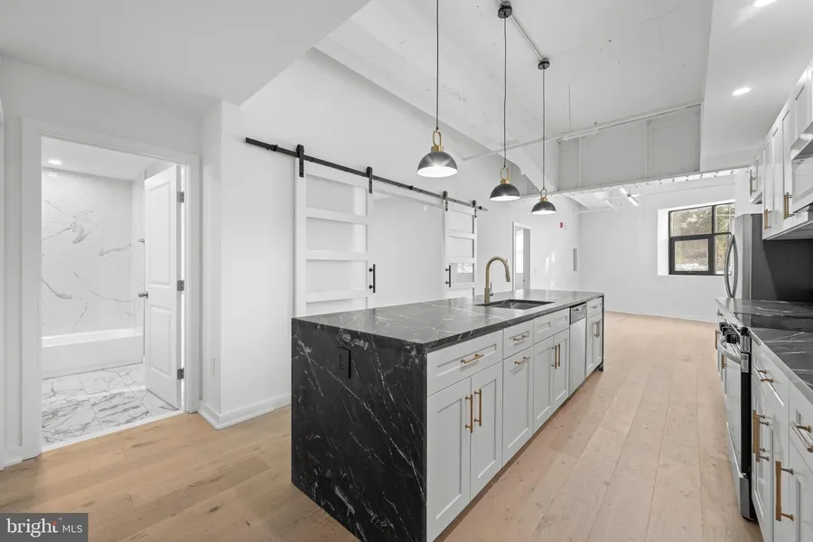 Welcome to The Lofts at Narberth Station, a beautifully reimagined residence in the heart of Narberth Borough. Unit 1B is a stunning 1-Bedroom, Den & 1-Bathroom apartment that blends historic charm with modern, industrial-inspired design. This thoughtfully renovated apartment is part of an intimate 8-unit boutique brick building, offering the character of classic construction, with the comfort and style of new development. Inside, the living space is filled with natural light and showcases striking contemporary finishes throughout. The open-concept kitchen features brand-new appliances, sleek cabinetry, modern fixtures, and clean architectural lines. Step outside and enjoy one of the most walkable locations on the Main Line, just moments from Narberth's vibrant downtown, with its boutique shops, cafes, pubs, and the beloved Narberth Theatre. Commuting is easy with the Narberth train station only steps away, providing direct access to Center City Philadelphia and the western Main Line, along with convenient proximity to major highways. Parking is available for an additional monthly fee. This is a rare opportunity to enjoy new construction living within a historic setting in one of the Main Line's most sought-after communities.
