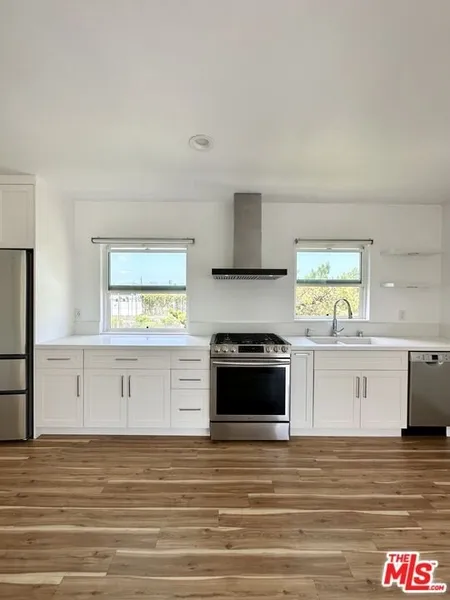 Recently remodeled 1-bed/1-bath top floor apartment with in unit laundry! Rare opportunity with views of the Santa Monica Mountains from the light-filled open living space and remodeled kitchen with shaker cabinets, Quartz sink + countertops, and newer appliances including a dishwasher. Water and trash included in rent. Plenty of outdoor space options including common areas shared with only 3 other units, and directly across the street from Ishihara Park - a perfect place to stroll with or without a four legged friend. Centrally located in close proximity to shops, cafes, restaurants, parks, business centers, SMC, local art centers along with easy access to the I-10 or Expo line. From fresh flowers at the Pico Farmers Market on Saturdays to sunsets at the beach - live in the heart of it all and experience it all!