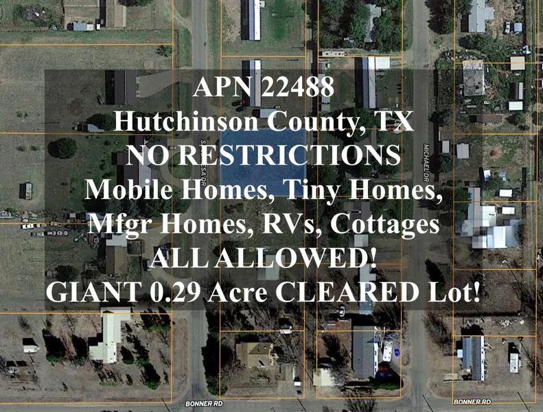 NO RESTRICTIONS! RV living, camping, mobile homes, prefab homes, tiny homes, cottages ALL ALLOWED! Ready to hook up power, water, TV and internet! Less than 10 minutes from R&R Boat Ramp on beautiful Lake Meredith. Get away for the day at Fritch Fortress Campground and Lake Meredith Recreation Area. Just a 15 minute drive from Borger, the largest city in Hutchinson County, with great dining, shopping, parks, gol...