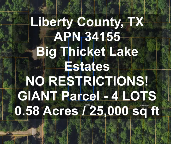 Legal Description: Lot Nos. 379, 380, 381 and 382, Section 17 of Big Thicket Lake Estates, Acres .574 (Liberty County, TX)