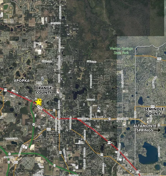 The property is on the east side of Old Dixie Highway adjacent the new Apopka Elementary school and SR 451 interchange just north of US HWY 441, 2 miles SE of the SR 429 beltway interchange (which provides direct access to Central Floridas major employment