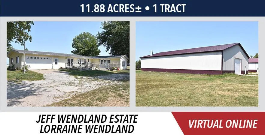 Mark your calendars now for this upcoming Appanoose County, Iowa real estate auction for the Wendland Family. This highly improved property includes a 3 bedroom, 2 bath, ranch style home that features an attached garage and a very nice deck. Other improvements of this property include a 50 x 100 utility building that was built in 2017 and a 50 x 100 utility building that was built in 2004. This building housed the Wendco Body Crafters, is fully insulated, has a concrete floor and includes several offices. If you are wanting to start your own business or looking for a place to store your collector cars or tractors, we urge you to take a look at this outstanding property.