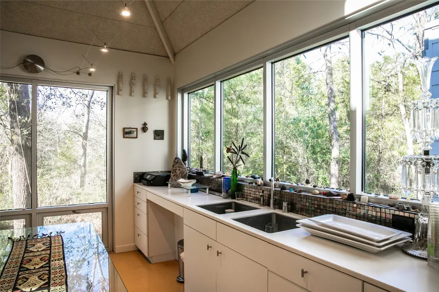 22-acre wooded retreat featuring a well-built contemporary home designed to bring the outdoors in. Massive windows frame peaceful views of wildlife and natural scenery, creating a seamless connection to the surrounding landscape. The open living area offers soaring ceilings with impressive beams, modern design touches, and abundant natural light. The spacious kitchen includes generous counter space, ample cabinets, a double oven, dishwasher, and propane cooktop. Two bathrooms feature tile floors, a jetted tub, and a separate shower room. A study area provides space for reading, work, or additional sleeping needs. Butler’s pantry includes a double sink, cabinets, and shelving. Enjoy quiet walks, birdwatching, and wildlife viewing across mature woods and open meadows. Being taken out of a larger tract; a new water well will be needed after purchase. Located 15 minutes from Navasota and about 20 miles from Brenham.