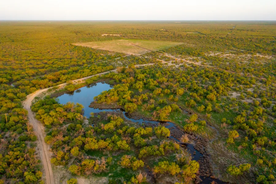 The creeks that meander through the property, provide strong forage and cover, along with large, mature mesquite, cedar elm, and hackberry trees spread throughout the ranch. The ranch also features excellent native brush throughout, including mesquite, guayacan, Brazil, huisache, twisted acacia, white brush, and prickly pear. The terrain is predominantly flat, consisting of Cochina and Cotulla clay, with a rise to Maverick clay loam in the northwest portion. A hilltop in the northwest corner offers elevated views across the property and would be an ideal location for a house.