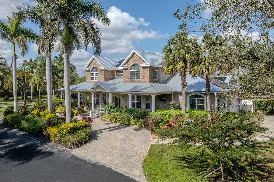 Welcome to an exclusive, gated luxury retreat, a one-of-a-kind three-home compound on five acres of manicured grounds, offering unmatched privacy, security and resort-style living. Step beyond the concrete perimeter wall and double-gated entrance into a world of elegance. Lush landscaping, a serene pond with a waterfall and a grand circular driveway set the tone for this exceptional estate. Whether you're entertaining guests, enjoying multigenerational living or seeking an investment opportunity, this property is designed to impress. Each home features its own entrance and front patio. The main residence is a sophisticated sanctuary with five bedrooms and 4.5 baths. Enter through a two-story foyer featuring a stunning crystal chandelier and a sweeping wood staircase leading to three spacious bedrooms upstairs. In the north wing of the main level, the luxurious primary suite offers its fireplace and a spa-like bath for ultimate comfort. On the opposite side of the home, there is a guest suite and a laundry room. The gourmet kitchen, equipped with granite countertops, a center island and top-tier stainless-steel appliances, leads into a separate dining room. The grand living room, complete with a fireplace, seamlessly connects to the resort-style outdoor living space. The covered lanai, with a fully equipped outdoor kitchen and a cozy fireplace, is designed for relaxation and entertainment. At the heart of the outdoor oasis is a custom pool with a stunning waterfall, surrounded by lush mature landscaping and enhanced by accent lighting to create a breathtaking ambiance. A vast 75-by-58-foot paver patio connects the main house to the pool house. The pool house is the ultimate entertainment space, designed for hosting and relaxation. It features a fully equipped bar and lounge, making it ideal for gatherings. An expansive entertainment area and a bedroom/media room provide ample space for leisure. The extra-large primary suite includes a private lounge area and two spacious walk-in closets with laundry facilities, offering comfort and convenience. At the rear of the property is a well-appointed guest home with an attached event hall featuring a comfortable one-bedroom, one-bath layout including a full kitchen, living room and laundry facilities. An extra-large three-car-plus garage with a workshop provides ample storage and workspace, and additionally, a bonus air-conditioned expansive event space. The estate's grounds are filled with thoughtful features, including a charming pergola-covered walking path that leads to seven raised garden beds with an irrigation system, ideal for growing fresh herbs and vegetables. Multiple meditation areas provide serene spaces for reflection. A paver RV parking pad with an electricity hookup and pump-out ensures easy accommodation for recreational vehicles. This estate is a rare find. Easy access to Interstate and Punta Gorda Airport. Schedule your private tour today.
