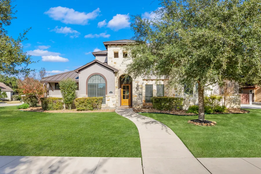 Impeccably designed and elegantly appointed, this builder’s personal residence is located within the gated community of Willow Wood at Shavano Park, offering an exclusive central setting with exceptional access. A dramatic entry welcomes you with soaring ceilings, a sweeping curved staircase, and refined architectural details including arched stone room transitions that immediately set the tone for the craftsmanship throughout the home. Formal dining is elevated by coffered wood ceiling accents and connects seamlessly to a generously sized butler’s pantry, ideal for entertaining. The two story family room is both inviting and impressive, featuring exposed wood beams, custom built-ins, and a striking stacked floor to ceiling stone fireplace that anchors the space. The chef’s kitchen is thoughtfully designed with granite countertops, a center island with bar seating, stainless steel appliances, double ovens, gas cooking, and upgraded lighting, creating a functional yet refined gathering space. The primary suite is privately situated on the main level and includes a sitting area, direct outdoor access, and a spa inspired bath with a garden jacuzzi tub, walk-through shower, double vanities, and an expansive walk-in closet. A secondary bath with exterior access adds convenience. Upstairs, a spacious game room is complemented by three large secondary bedrooms, providing flexibility for guests, work, or recreation. This stately two story home delivers timeless design, quality construction, and a prime location with quick access to Loop 1604, dining, and shopping.