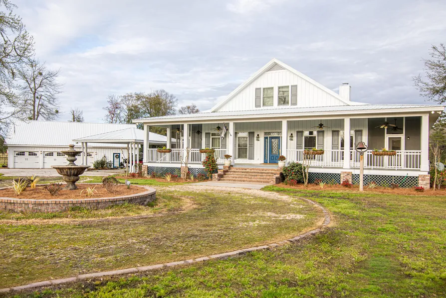 - Arcola Equestrian Farm - This gorgeous custom-designed low country 5100 sq ft home is situated on an 18.5 acre fully functional horse farm. With gated entry, it is located only 1.4 miles from I-16 in Bulloch County making for an easy commute to Savannah. With 10 foot ceilings, the family breakfast area and living room overlook a 1-acre stocked pond. You will find a formal dining, study, and spacious master on the main floor with three additional upstairs bedrooms and a playroom. With its expansive outdoor space, this estate home has 2000 sq ft of covered and screened porches, along with a pergola and carport space that could be used for additional entertaining. The three-car garage boasts a one-bedroom apartment with a sauna. Arcola Equestrian Farm consists of three pastures and a fourth barn pasture with round pen. The barn contains six stalls, an office space with bathroom, and unfinished loft with two outdoor covered stalls and a hay barn. Only 40 minutes from Savannah, this property is a horse lovers dream that is turnkey ready. Dont hesitate to call Brooks Brown today, 912-682-9953.