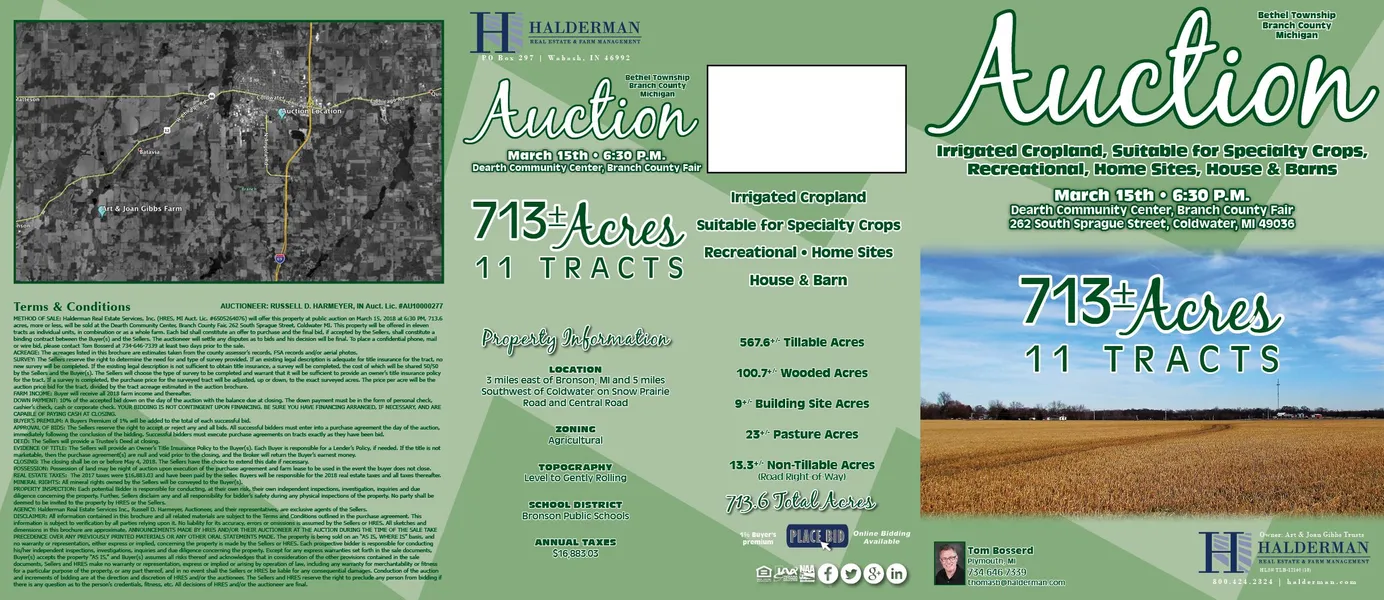 Auction Location: Dearth Community Center, Branch County Fair : 262 South Sprague Street, Coldwater, MI 49036