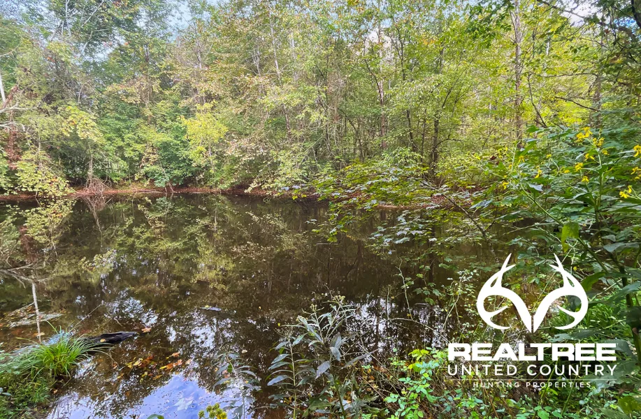 - Hunting property with bedding areas, water, and hardwood food sources.