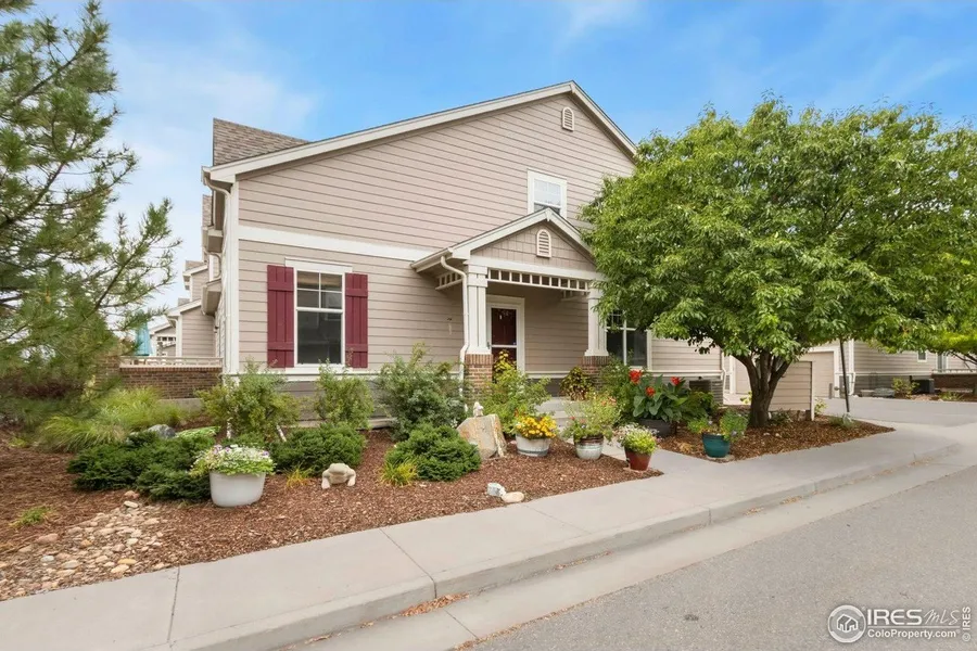 This bright and inviting 1 1/2-story corner unit offers exceptional living with two spacious primary suites-one conveniently located on the main level. The home features stunning new granite countertops, elegant porcelain flooring throughout, and new carpet. Lower-level light switches are handicap accessible. The home offers a stylish kitchen adorned with Samsung appliances, oak cabinetry, and a range hood that exhausts to the exterior. The attached two-car garage includes extensive shelving, providing generous storage for automotive gear, camping equipment, and more. The unfinished basement offers endless potential for future expansion or customization to suit your needs. Enjoy low-maintenance, lock-and-leave living with no exterior upkeep required. Relax on the private patio adjacent to serene open space views-where the occasional elk might stop for a nap-or take advantage of the many neighborhood amenities. Excellent location. This home is a short walk to the community pool, skate park, tennis courts, and Mehaffey Park. The Olde Course Golf Course and driving range are just a quarter mile away. With close proximity to HWY 34-the gateway to the Rockies-you'll enjoy a scenic drive through the Big Thompson Canyon to Estes Park, "America's Little Switzerland," and onward to the entrance of Rocky Mountain National Park. This home offers the perfect blend of comfort, convenience, and Colorado lifestyle.