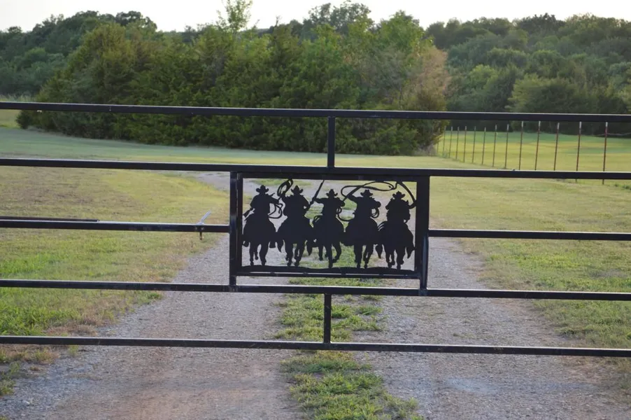 Are you looking for a piece of paradise in the country? Check out this beautiful 10 acre parcel with Solitaire trailer house and 40x50 barn with 6 perfect stalls near Lake McMurtry. The gated entry greets you with the popular metal image of the Stampeding Cowboys on Horseback. The house is built on a permanent foundation with 6 walls and has a large open living room/dining room combination with vaulted ceiling, corner fireplace with mantel and built in shelves and cabinets. The comfy master suite has a large bathroom with soaking tub and separate shower. The two additional bedrooms are a nice size with walk-in closets. The spacious kitchen has an eat-at bar, an abundance of countertop space and cabinets and separate breakfast nook. There is also a lovely outdoor patio with mature landscaping and shade tree, making it a great location for outdoor grilling and entertaining. The metal barn is insulated, has two overhead doors, water and electricity. This property could be ideal for horse owners, families with 4-H or FFA projects, or anyone wanting more space to enjoy nature. Dont miss out, see it today!