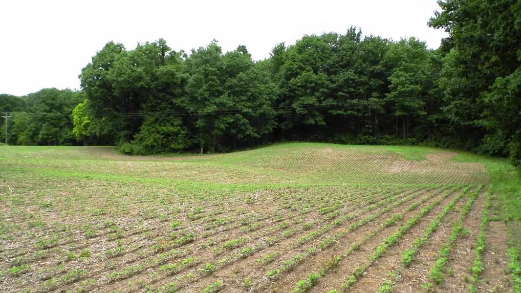 Approximately 30 rolling partially wooded acres. Nice rolling hills out front in the crop land, and back in the woods. This property also has some frontage on a large wildlife pond that is a favorite of ducks and geese. The woods are a nice combo of oaks, maples, poplars, and a few beech. It has been select cut about 7 or 8 years ago. Still lots of nice trees to hang a tree stand, and the more open canopy provides areas for bushes and vines to grow. Great places for deer bedding and food. Couple trails wind thru the woods giving some access. Property is also home to turkeys, and lots of squirrels.