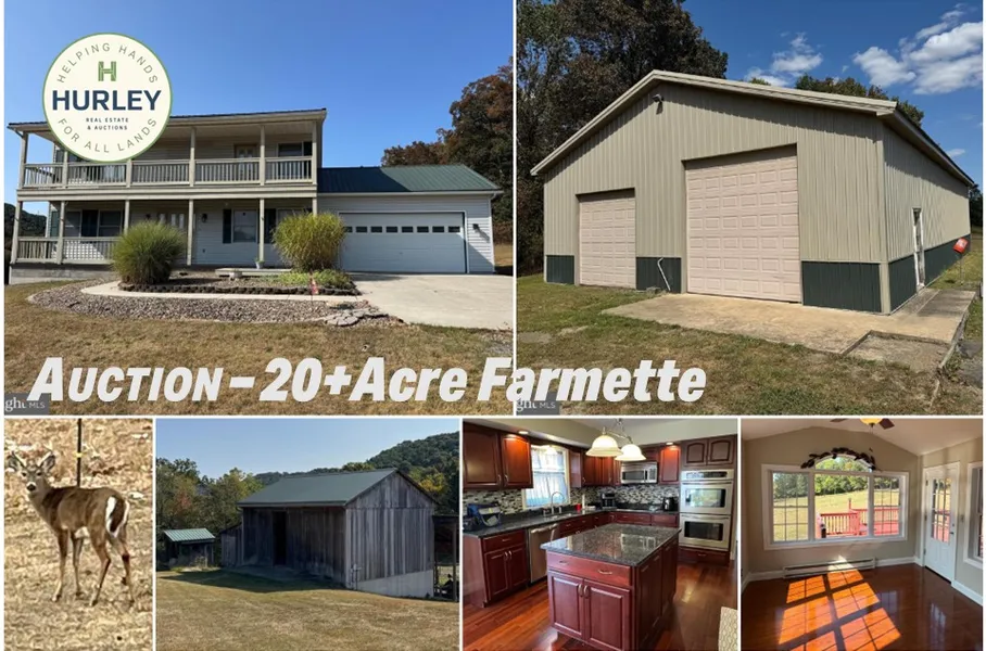 20+ACRE PARADISE for PUBLIC AUCTION at 5868 Orchard Rd, Huntingdon PA 16652 on Oct 23, 2025 @ 3pm. Beautiful home w/3 BR, 2.5 bath, LR, kitchen w/ granite countertops & center island, office, wood floors, sunroom, basement, FR, game room, laundry, 2-car garage, 40X60 POLE BUILDING, BANK BARN w/4 horse stalls, 6±acres pasture & more!