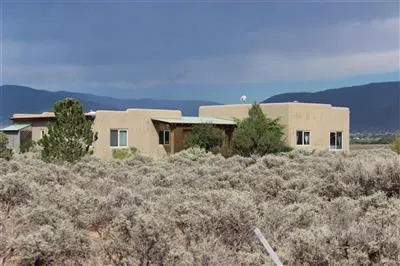 Light & bright southwest pueblo style home with open floor plan and stunning Taos Mountain & sunset views. 3.0 acres in convenient southside Ranchos location. Large kitchen/living area, cork tile floors, high ceilings. Approx. 1787 sf, 2 bd/2 ba. Rastra block construction and passive solar features.