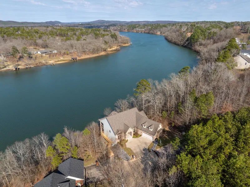 REAL ESTATE DESCRIPTION: Diamondhead Residents Enjoy the Security of a Private, Family-Oriented Gated Subdivision Community & Amenities, Including an 18-Hole Championship Golf Course, 19th Hole Restaurant & Lounge, Olympic Size Swimming Pool, Tennis/Pickleball Courts, Basketball Courts, Park, Pavilion & Playground, Minutes from Everything Hot Springs has to Offer ~ This Immaculate, 2-Story, 3,000+/- SF, 3 Bedroom/ 3 Bathroom Stucco, Rock & Vinyl Exterior Home Custom-Built in 2013, in Lakeside School District, is Selling w/the Adjoining Lot for a Total of 0.5+/- Acres w/ 230+/- Ft. of Lake Catherine Frontage & Some of the Best Views on the Entire Lake ~ This Beautiful Home w/Stunning Lake Views from Multiple Rooms in the Home & from the 2 Covered Balconies & Lower-Level Deck Features Brand New Dual Zoned HVAC System, Tankless Hot Water Heater, Vaulted Ceilings, Tray Ceilings & High Ceilings Throughout, Modern Designer Lighting Fixtures, 8-Foot Doors & Gourmet Chefs Kitchen ~ Main Level Consists of a Huge, Vaulted Ceiling Living Room w/Built-in Entertainment Unit, a Centered See-Thru Fireplace, Hardwood Plank Flooring & a Separate Sitting Area w/a Wall of 9 Windows Overlooking the Lake ~ The Adjoining Gourmet Kitchen has Granite Countertops, Oversized Custom Cabinetry, Large Kitchen Island w/Double Sink, Coffee Station & Built-in Appliances Including French Door Refrigerator, Wall Oven & Microwave, 5-Burner Gas Stove, Dishwasher, Ice Machine & Pantry Closet ~ Formal Dining Room w/Tray Ceiling & Chandelier ~ Master Suite w/High Tray Ceiling, Private Bath w/Whirlpool Tub, Separate Walk-in Shower, Dual Sink Vanity &Huge Walk-in Closet ~ 2nd Bedroom w/ Walk-in Closet ~ 2nd Full Bath ~ Mud Room/Laundry Room w/Sink & Built-in Cabinets Leads to the 2-Car Attached Garage w/Bonus Storage Room ~ Staircase Leads to a Large Carpeted, Unfinished Attic Space that Could be Finished into a Bonus Room ~ Lower Level Consists of a 3rd Bedroom w/Sitting Area & Kitchenette ~ 3rd Full Bathroom ~ Bonus Hobby/Craft Room ~ Concrete Wall Storm Room w/Steel Door ~ Large Basement Area has been Immaculately Wrapped & Professionally Encapsulated ~ Offers Made Prior to Auction Day are Welcome & Encouraged!