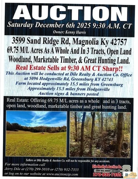 LAND BUYING AUCTION- Dec. 6th at 9:30CT 70 acres+/- SOLD as a Whole and in 3 tracts Tract #1-20.98acres Tract #2-30.87acres Tract #3-17.90acres