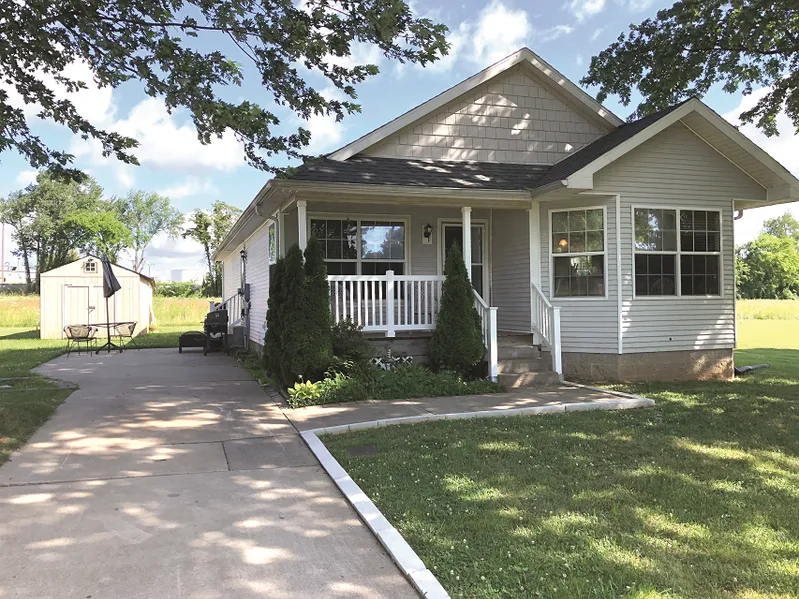 The property features a 1,350 sq ft residence with 3 bedrooms & 2 baths, vinyl siding with shake accents exterior and a very well-designed open floor plan inside. The kitchen, living room and dining room with bay windows design are open and airy. The island kitchen has great usable storage with seating, good cabinet storage and food prep areas. Appliances include refrigerator, stove, microwave and dishwasher. The dining area and living areas are open, yet each are well defined within their space.