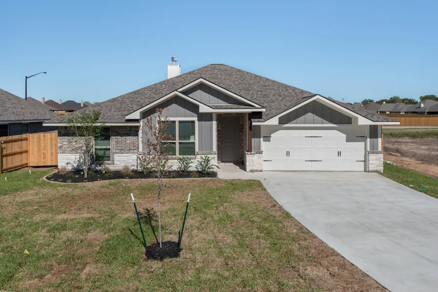 Manley Home New Construction to be completed Nov.1, 2017 in Austin's Colony. 4bed/2 bath, 2,031 Sq.ft, vaulted ceiling in family room, open concept, stone/brick combination exterior. City convenience, easy access to the community park, tennis and basketball courts, sporting field and lighted walking trails.