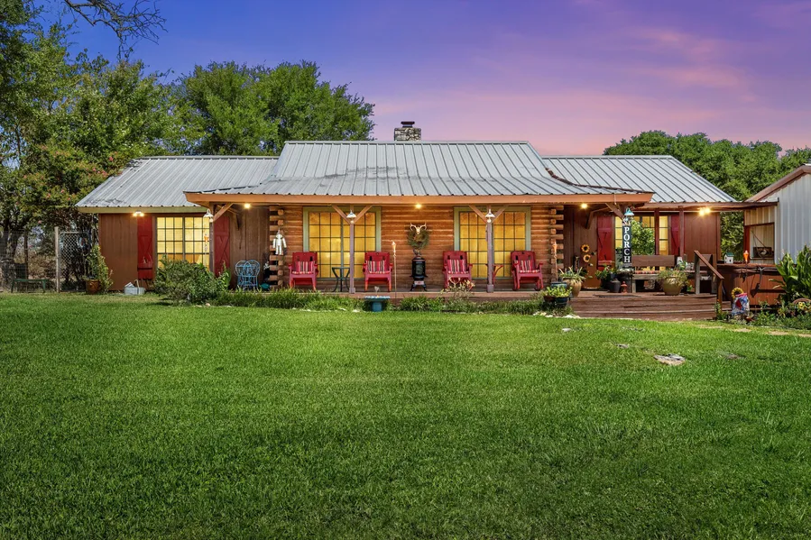 The perfect front porch is waiting for you at 290 Odle Lane. This is what authentic country living looks and feels like. Walking through this delightful 3 bedroom, 2 bath log home just feels welcoming like home should. The large rock fireplace separates the extra roomy living room from the efficiently designed kitchen and charming dining area. Enjoy the ample space of the two guest rooms with a hall bath in between and a spacious primary with ensuite bath. Home has been lovingly maintained and refreshed, including a brand-new central AC unit. Walking out to the wonderful covered back porch you can imagine enjoying the peace and quiet of a Texas night. 11+/- acres surrounding the house have beautiful oak trees and some cultivated farm ground that could easily be put back into grass. Tranquil days and starry nights...not a bad way to live.