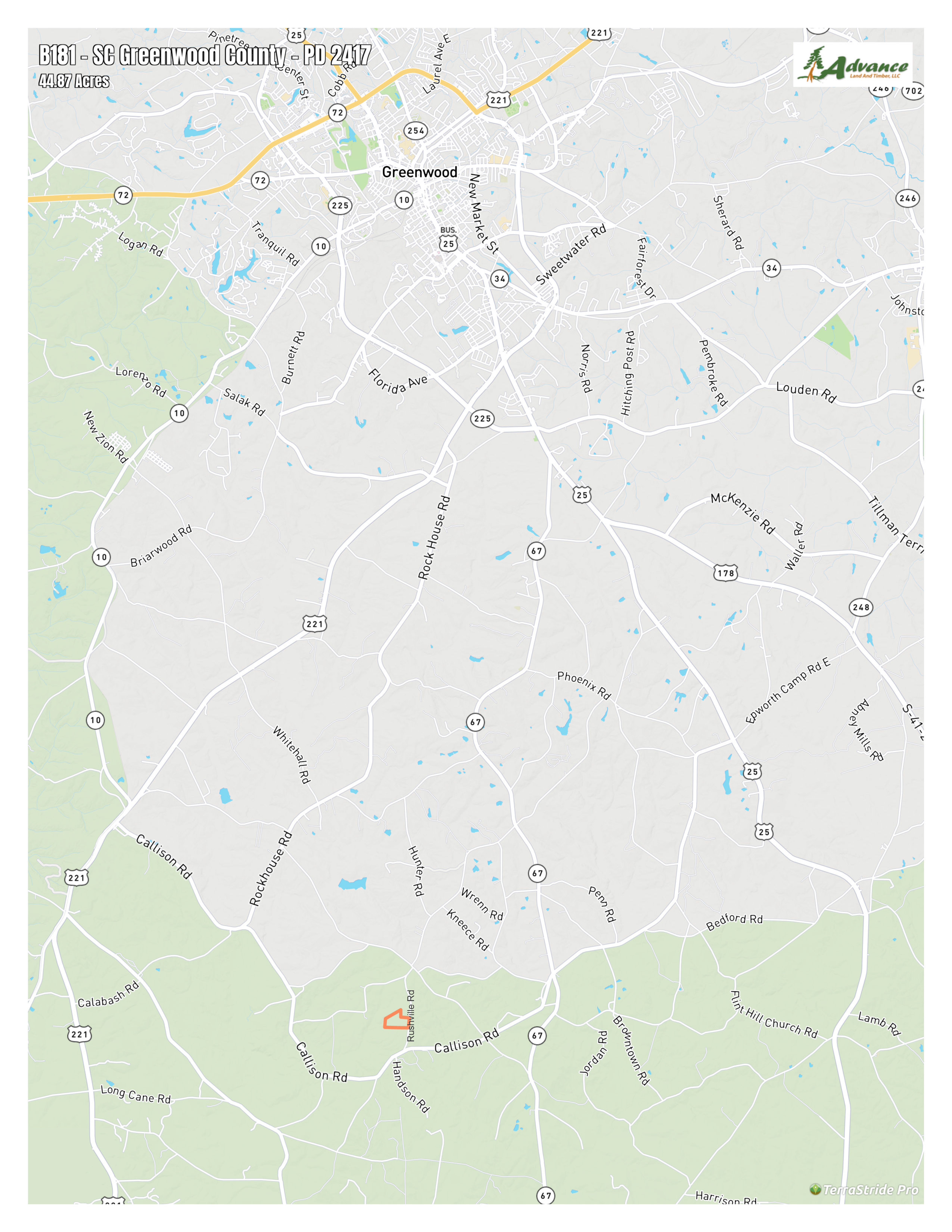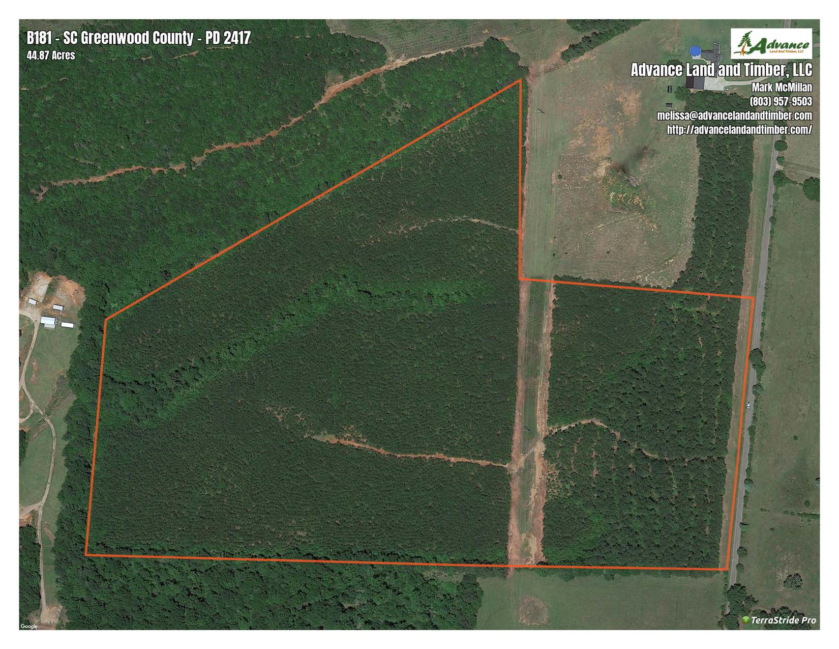 This property consists of 44.87 acres on Rushville Road, Bradley, in Greenwood County. This tract is mostly pine plantation and has a powerline running through the middle of it, which would make a great dove field or food plot for deer. It would also be a perfect property for a homesite with acreage to hunt and stretch out on.