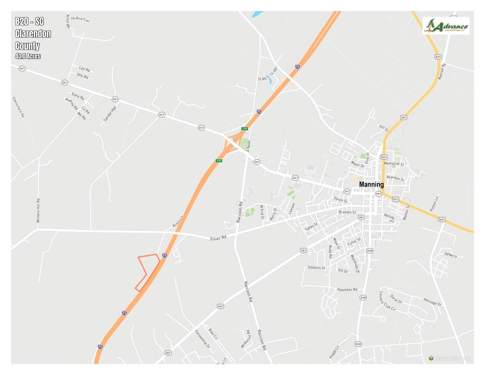 Research Parcel InformationFrom downtown Manning, head west on W Huggins Street, continuing west onto Silver Road, cross over I-95 and take your first left onto Acorn Lane. Property is located at the end of the road.