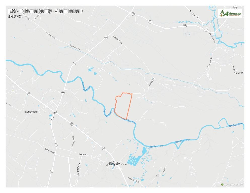 Parcel F consists of 485 acres along the Cape Fear River in Pender County, NC. The diversity of soil types makes this property a great hunting tract. This property is known for its exceptional waterfowl habitats as well as being loaded with deer, turkey, black bear and hogs. It has everything from upland pine plantations to natural flooded areas and cypress swamps. There is 0.86 miles of cape fear river frontage and has a great internal road system allowing you to access the entire property. This property is accessed through a 50 ft. deeded easement through Parcel E off Buckle Road.