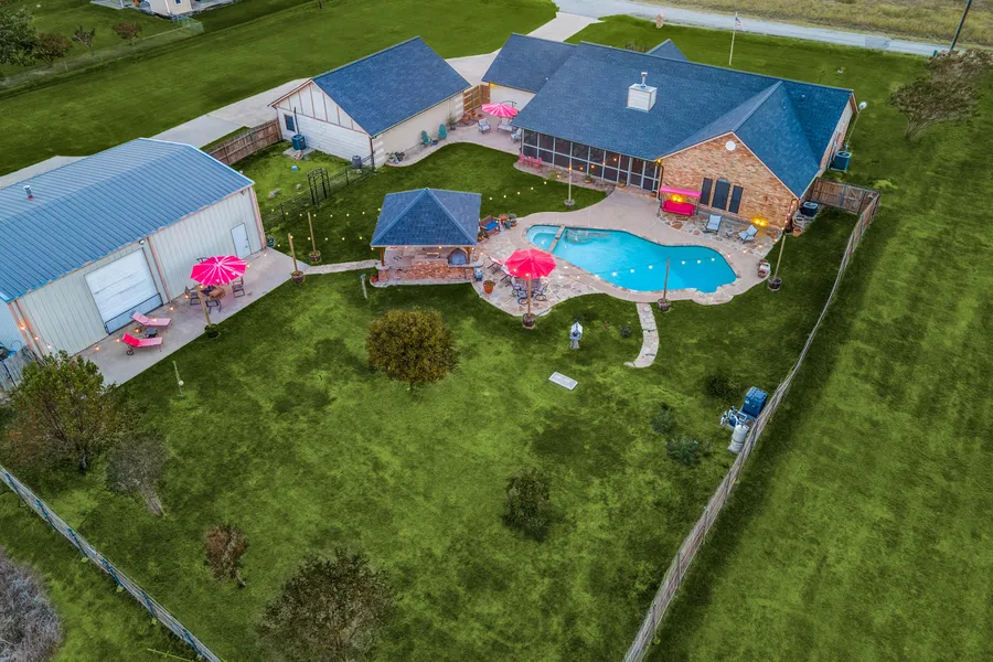 Custom built home has been Completely transformed By the Current Owners. Live and work from Paradise! Step inside to an Open concept floor plan that is ideal for both entertaining and daily function so you don't have to miss anything while in the Kitchen.Spacious kitchen that any Chef would enjoy cooking in with Gas cooktop,Breakfast Bar,Granite, and tons of cabinets space.Master Suite is oversized with French doors to your office, nursery or whatever you heart desires.Ensuite Bath has separate vanities, shower large enough for 2 and soak the days stress away in your tub.If you want it, this home has it. Beauty AND function! Screened in Back porch to sit and eat dinners in the Fall, wrap up with a blanket in winter and watch the sunset.Serene and peaceful backyard Oasis that is set up for all your Entertaining and Family Fun nights with Pool, Outdoor Kitchen, Pizza Oven, Fridge, Outdoor Living. Separate Apartment and or Pool House with 2 Bedrooms, Bath, Kitchen and Living.40x60 Workshop to top it all off. The Main house has 3 bedrooms, 2 baths, Overisized Laundry room , The Study off of the Master has French Doors for privacy, plus French doors to the covered Patio.