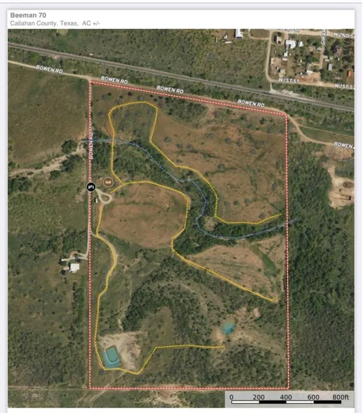 Contact agent for a pin drop. From FM 18 on the west side of Baird, Tx, turn south onto Bowen Road. Cross the railroad tracks and turn east and go to the first cattleguard on the right. Turn right or south, cross the cattleguard, then enter at the first gate on the left, near the livestock pens.