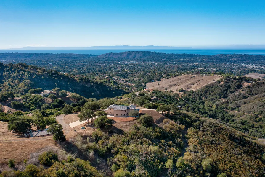 The gated property is accessed by a private road that services only two other homes and leads to a detached 4-car garage. Multiple trails and roads cover the acreage, including a separate road that leads to the North-West side where one can dream of building a guest house or ADU with ocean, island, and mountain views that extend past UCSB out to Gaviota. Come and see this unique property that feels private and worlds away from the hustle and bustle of Santa Barbara, yet just moments away from the necessities of life.