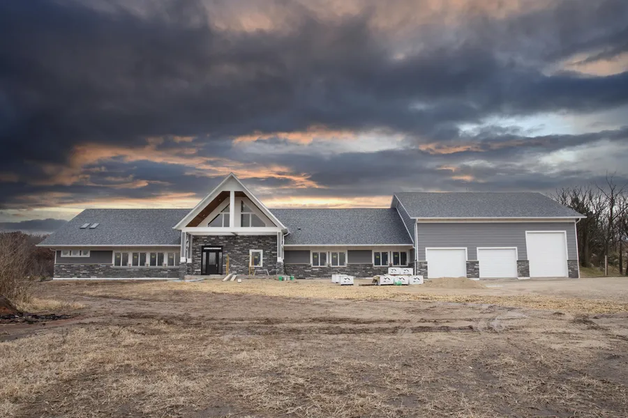 Priced fully finished! Amazing opportunity to get into a custom sprawling ranch and customize select finishes, colors, and design. This ranch offers 9,000 sq ft of living space with 5 bedrooms and 2.5 baths, plus a clear-span basement with no support pillars. The 29' x 23' Great Room has vaulted ceilings and a loft overlooking the 30' x 30' covered patio with outdoor kitchen rough-in. Luxury primary suite includes a 540 sq ft bedroom, spa bath with zero-step entry shower, Kohler fixtures, oversized walk-in closet, and hidden bonus room. Radiant heat throughout including garage, fully wired smart home, sunroom with skylights, office, hidden vault room, and 48' x 51' heated garage with tall overhead doors for 6 vehicles. Private 5-acre lot with city/sewer with natural screening.