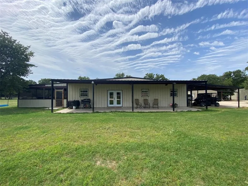 Exceptional 2.099-Acre Ranch Retreat with Barndominium, Guest Apartment & More – very private, surrounded by tall Post Oaks, this country oasis is waiting for you!! Ideal for those seeking a peaceful rural lifestyle with modern conveniences, this property features a spacious 2,500 sq ft Barndominium offering 3 bedrooms, 2 bathrooms, and thoughtfully designed living spaces. Step inside to a bright, open-concept layout where the living, dining, and kitchen areas flow seamlessly—perfect for family life or entertaining. The primary suite boasts a luxurious ensuite bath and a huge walk-in closet, while two secondary bedrooms are connected by a well-appointed Jack-and-Jill bath, each with its own deluxe closet system. A large utility room with pantry, private office, and attached 4-car carport add everyday convenience. Enjoy your mornings on the covered front porch or unwind in the screened-in side porch creating the ultimate outdoor retreat. Beyond the main home, you'll find a 30x30 shop with electricity and a separate 1-bedroom, 1-bath apartment—ideal for guests, multigenerational living, or rental income. A dedicated 2-car carport accompanies the apartment. Additional improvements include a large shed perfect for RVs, boats, or tractors, a basketball court, Conex storage building, and more. Property is serviced by 1 water well. This property is a rare opportunity to enjoy residential comfort, ranch practicality, and recreational freedom—all within easy reach of town. Additional acreage available up to 91 acres (mls 20939942 & mls 20938018, or entire 93 acres mls 20938836). Cross Plains is only 10 minutes, Abilene 35 minutes and Ft. Worth 2 hours.