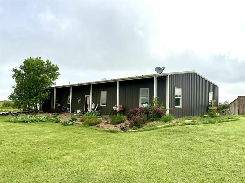 Welcome to this beautiful 4 bedroom 2 bath barndominium with a durable metal roof, nestled on 13 acres of land. Offering just over 2000 square feet of living space, this home features a spacious open concept layout and a large kitchen equipped with quartz countertops, large island, tons of cabinet and counter space, under cabinet lighting. The sink has a delta water faucet, it is turned on and off by touch and the reverse osmosis is plumbed int the fridge. Additional highlights include a versatile office/catch-all room, a 1 car attached garage, 8 row water sprinkler system, water softener, water well, back up generator, steel corrals, a loafing shed, and livestock fencing. The 60 x 40 with a lean to is wired, insulated and vented and features 14 foot side walls with 2 overhead doors. Ideal for projects for storage. A cozy man cave is located in the barn, and a small office building ...