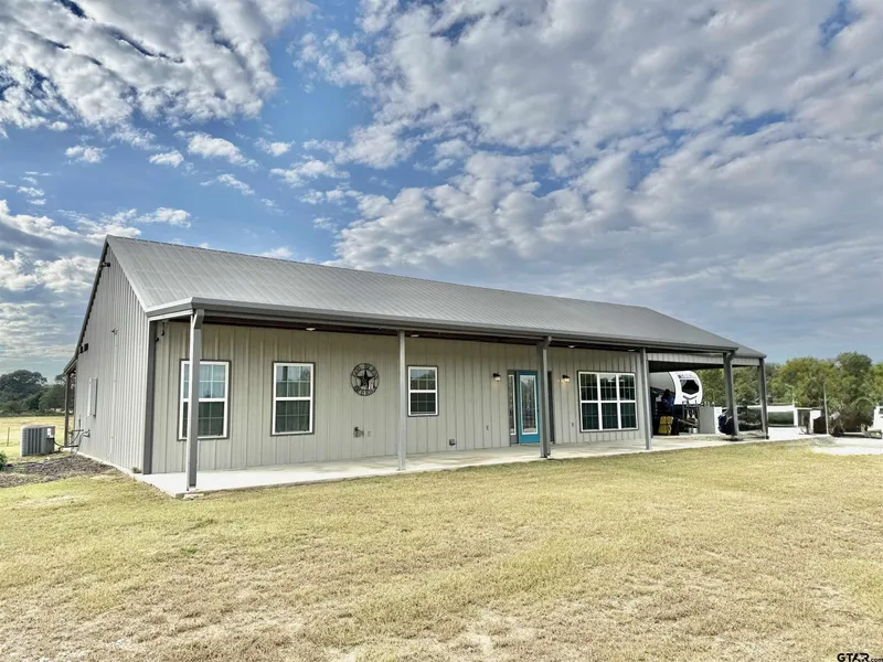 Welcome home to this like-new, highly energy-efficient barndominium! This beautiful 3-bedroom, 2.5-bathroom property was built in 2020 and is set on a sprawling 7.5-acre lot. You'll have all the space and privacy you desire! Enjoy the peace of mind that comes with a newer, efficient home and the freedom that comes with plenty of land. You won't need to worry about losing power with the back up generator! There is also a well drilled but not currently in use. Step outside onto the inviting covered patio—both front and back—for seamless indoor-outdoor living. Practical features include: a 2-car carport protects your vehicles plus has space for a work shop AND an existing RV hookup is ready for your recreational vehicle or guests! The front features PLENTY of parking for trailers, trucks, guests, or whatever fits your needs! Enter into a bright, spacious open floor plan with gorgeous 9ft vaulted ceilings! From there, enjoy the convenience of a separate utility room plus a flex space upstairs! Each bedroom is bright and open with plenty of closet space. The guest bedrooms have a jack and jill bathroom between them. The primary bathroom is unfinished, so you'll have the freedom to make it your own!! This home is a perfect blend of modern efficiency and country convenience. Schedule your showing today! Motivated sellers!