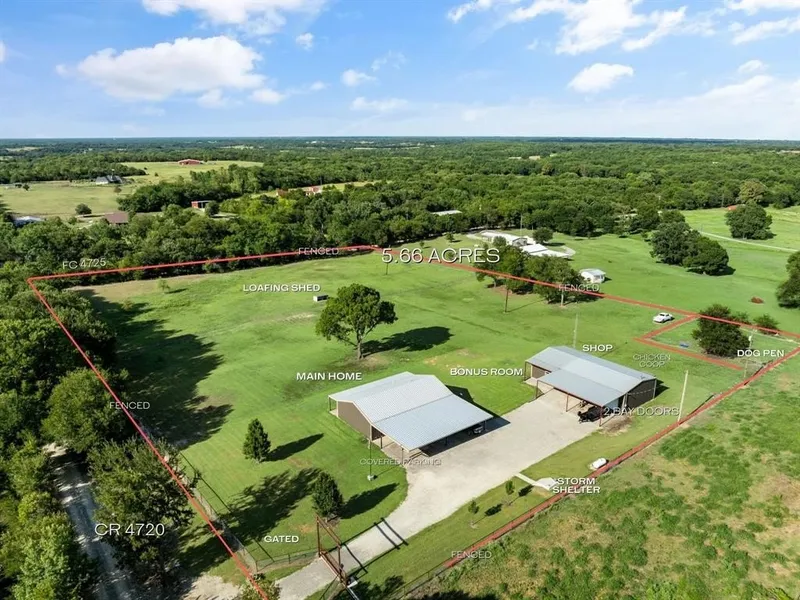 *OPEN HOUSE_SUNDAY_11-16-25_2-4pm* Land, Home, and Shop... This Property Truly Has It All! The drive home is filled with scenic country views & the only traffic jam you are likely to experience is the occasional tractor headed to the neighbor's field. Pretty 5.6+ acres is fully fenced, the lush natural tree line creates a depth of privacy. The gated entry is your first hello & the first glimpse of the flagpole. The furling red, white & blue flag has long been a staple here, the sellers will leave for the next owners to enjoy. The rustic barndominium is pretty, with deep, rich chocolate tones, stone accents, BIG porches & a recent covered parking extension, offering a great amount of covered parking. With open views, the living, dining & kitchen areas create an inviting space to enjoy daily living or accommodate a crew of your favorite people. This low maintenance, versatile home features...