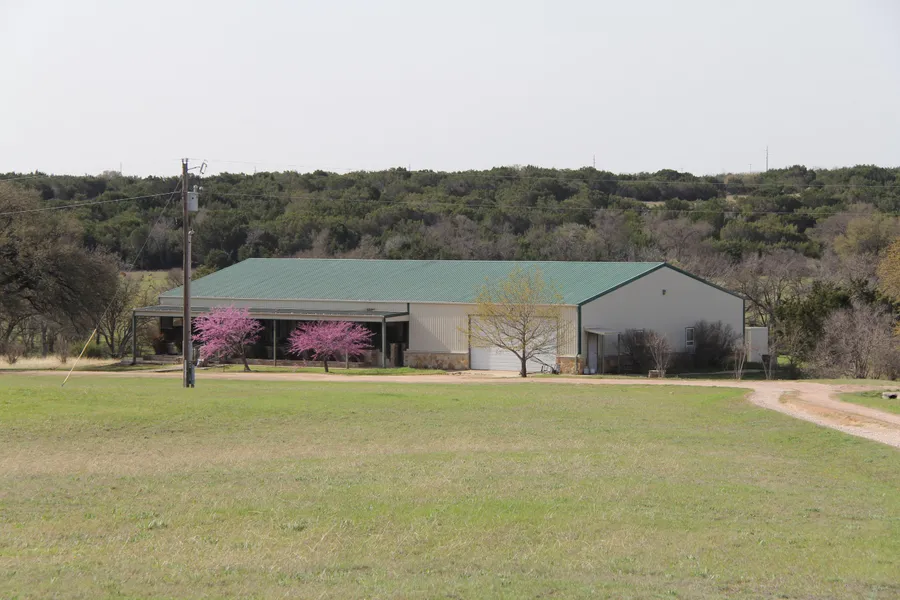 This is a beautiful property located approximately 1.5 miles from Hamilton on FM 2905. The barndominium style home is actually a 2008 model manufactured home that is enclosed within an approximate 5,500 st ft metal building (5,500 sq ft includes the 2,160 sq ft of living area in manufactured home). The home has approximately 2,160 sq ft of living area that includes 3 bedrooms, 2 bathrooms, nice size living room, large kitchen, laundry room, and an office area. Other features to point out is that the home has central heat and air, flooring includes carpet and tile, and the master suite is very large. There is a water well & septic that are connected to the home. In the front and rear of the house are two large (approximately 864 sq ft each) covered patios. The back patio offers some fantastic views over looking Pecan Creek bottom. Also connect to the house is an approximate 1,620 s...