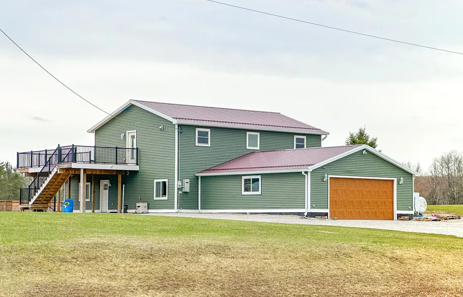 Completely renovated, everything brand new, in 2020 including siding, drywall, furnace, A/C, full house Generac generator, electrical, plumbing, insulation, flooring, appliances, and composite deck. 2020 new construction 32 x 28 attached garage. 55 x 40 pole barn. All this sits on 20 acres adjoining thousands of acres of Huron National Forest. New Metal roof installed 2017. 7 x 20 foyer can lead you right upstairs to your main living area, or into the lower level suite. The lower-level suite includes a 14 x 12 living room, 14 x 12 kitchen with granite countertops, ceramic tile backsplash, and Stainless-steel appliances, 12 x 12 BR with a Mini split unit for heat and A/C, 7 x 8 BA, and an 8 x 9 laundry room. Your main living area has an electric fireplace and a 7 x 5 half BA. Also on your main level is the 14 x 20 workshop. The gorgeous hickory stairs lead up to the main level with a 16 x 16 living room with vaulted ceilings, recessed lighting and easy access out to your deck. 14 x 16 dream kitchen includes an island, granite countertops and ceramic tile backsplash. The upper level has 2 BR, 2 BA and a laundry area. The master bedroom is 15 x 11 and features a 4 x 12 walk-in closet and 11 x 5 BA with a walk-in shower. The main upstairs full BA is 6 x 9. Your 2nd upstairs BR is 16 x 9. Come see this one in person as it truly has so much more to offer.