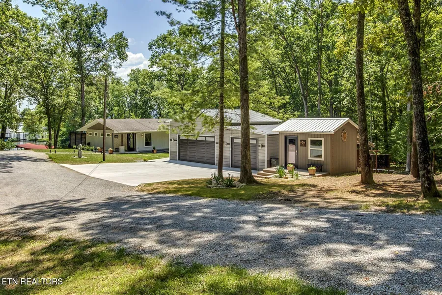 Seller will consider backup offers. Are you looking for a home that is exquisite, private, and lakefront? This elegant beauty is waiting for you! Featuring 2820 sq. ft, 3 bedrooms, an office, 3.5 bathrooms, and a detached 928 sq ft. 3 car garage and a 12x12 detached office/workout room/craft room. The design process began in 2019 when the owner had a vision to create one of the most striking homes in the area. The home was taken down to the studs and built back with new everything except for the roof, which is only about 9 years old. The seller has spared no expense as they believed it would be their forever home. As you step through the front door, you will feel the love that was poured into making this house the perfect home for you. The crystal light fixtures catch the glow of all the natural light that comes through all the new Pella windows. And then, you round the corner to see the spacious kitchen designed for the chef of the family with quartz countertops, marble backsplash, and custom made soft close cabinets. The huge island is perfect for displaying all the gourmet dishes while entertaining your family and friends. There are actually 2 master bedrooms with ensuite bathrooms, one on the main level and one on the lower level. On the lower level, you'll find an additional family room, 2 other bedrooms + an office and 2 bathrooms. During the warmer months, relax on the back deck or the lower level covered patio with the beautiful views of the lake and wildlife playing in your backyard. When the weather gets a little cooler, climb in the hot tub to let your worries melt away. To enjoy the lake life, the sellers have already received a TVA dock permit and are including 2 jet ski ports that can be attached to your new dock or used independently. There is just so much about this immaculate property you are going to want to know! Please inquire about the document titled GOOD THINGS TO KNOW.