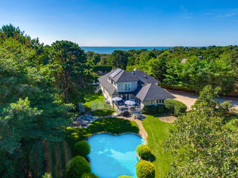Situated South of the highway, in the prestigious Sandringham Beach community, this recently built and beautifully finished contemporary home has it all! The property includes deeded access to a private neighborhood beach on Shinnecock Bay and water access on Old Fort Pond where you can moor a boat or launch canoes, kayaks, and paddleboards. Set on a lush 1.40 acres of mature landscaping with multiple terraces for entertaining, this property includes a heated free-form pool, koi pond, and a full-size sunken deco-turf tennis court. The 5800 square foot house includes 6 bedrooms, 5.5 baths, study, chef's kitchen with Viking appliances, great room with wood-burning fireplace, formal dining room, three season room, and a finished lower level with a wet- bar and infra-red sauna. The master suite with its own fireplace is situated on the first floor and there are five additional spacious bedro...