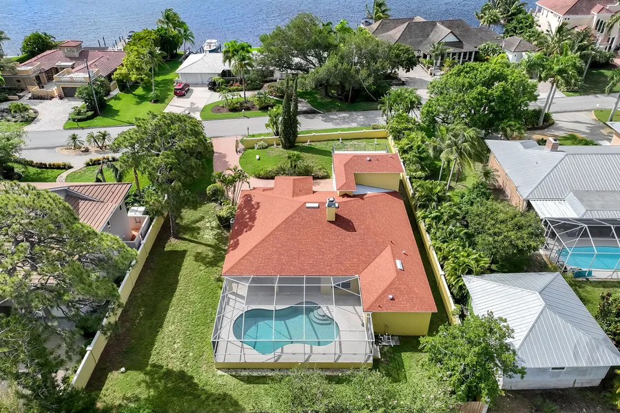 One or more photo(s) has been virtually staged. Please note one or more of the photos have been virtually staged. This private, gated property boasts a variety of sought-after features, including a newer roof, newer air conditioning system and a fully updated kitchen. Positioned near the water but built at a high elevation, it offers affordable flood insurance. Centrally in Nokomis, you're just minutes from the beach and waterfront dining. The pet and family-friendly neighborhood also includes a lovely community park just down the street. With five spacious bedrooms and four baths, there's plenty of room for family and guests. The den offers flexibility, ideal for work or relaxation. Outside, enjoy a screened-in pool ideal for leisurely swims, and an upstairs viewing deck providing a charming peek-a-boo view of the water. Additional features include a cozy wood-burning fireplace, ideal for creating warmth and ambiance in the living space. A three-car garage provides ample parking and storage, ensuring convenience and functionality. This home offers the ideal blend of comfort and practicality, making it an excellent choice for those seeking luxury and everyday living. No flooding from recent hurricanes, according to the owner, this home is high and dry. Plus, a new pool cage has just been installed.