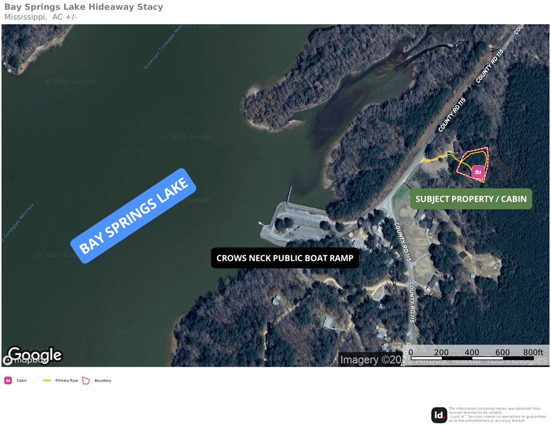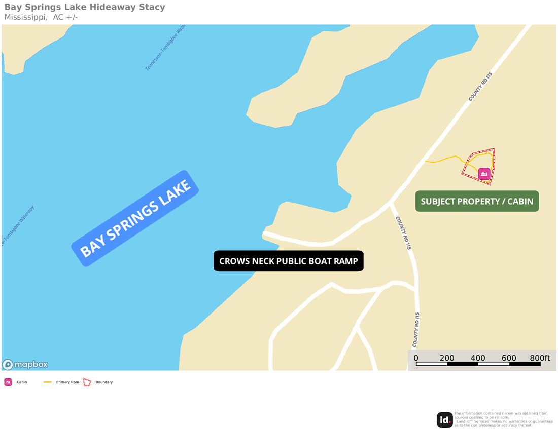 Located just three-tenths of a mile from the Crow’s Neck Public Boat Ramp, this tucked-away cabin provides almost immediate access to world class boating and fishing on the 6,700-acre Bay Springs Lake. Managed by the U.S. Army Corps of Engineers and located on the Tom Bigbee Waterway System, Bay Springs is widely known as one of the cleanest and clearest lakes in the Southeast, and certainly in Mississippi. Whether you enjoy boating, swimming, fishing, or simply recreating on the water, this setting is second to none.