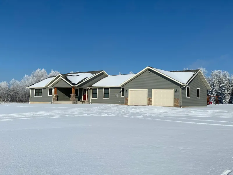 Beautiful 4 bedroom, 2.5 bathroom home located on +/- 12 acres. This home was built in 2015 and is conveniently located 1.5 miles from the City of Medford. This ranch style home features an open floor plan. Kitchen with backsplash, breakfast bar, soft close drawers and large pantry. Living room with gas fireplace, custom blinds, engineered hardwood flooring and southern exposure. Main floor master suite with trayed ceiling, walk-in closet, separate closet and master bath with soaking tub and shower. Three additional main floor bedrooms, full bath, bath, laundry area and foyer featuring bench seating/storage. Lower level is plumbed for an additional bathroom and has look out windows for adding additional living space. Oversized attached 2+ car heated garage. Additional 60x50 shop/outbuilding with electricity and two large overhead doors. 20x12 storage shed. Front covered porch and rear d...