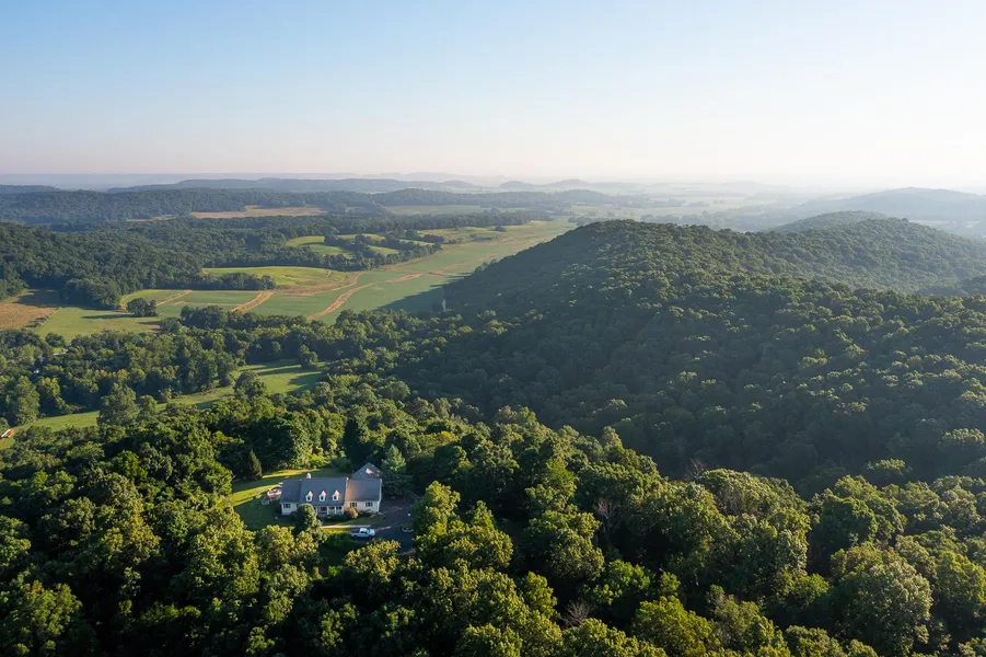 Beautiful 53 Acre Hilltop Estate with fantastic views of the surrounding valley! The beautiful home features an open floor plan and 5576 sq ft of living space. The main floor has 4 bedrooms and 3.5 bathrooms and a large open living space with great views of the beautiful surroundings. The fully finished walk-out basement is great for entertaining and has a large office space that could be converted to an extra bedroom. The basement also has a full bathroom and a finished garage/workspace. Step outside and relax, entertain, watch the wildlife on the front porch, patio, or back deck. The home is surrounded by native flowers and fruit trees. The surrounding 54 acres of woods and hills are beautiful, there are trails cut throughout for easy navigation and there is a shooting range and a zipline! This home and the surroundings are beautiful, don't miss your chance at such an amazing property!