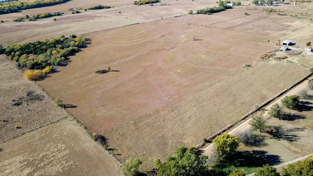 The native grasses are nice and clean and are currently harvested annually by a local tenant. There is a 4.4 +/- timbered area in the far southwest corner of the property known to hold whitetail deer and other Kansas wildlife. The property is 90% fenced and could potentially be grazed if desired. A survey will be completed before closing to partition off an approximate 1.5 +/- acre area with a home and outbuildings in the northeast corner of the property.
