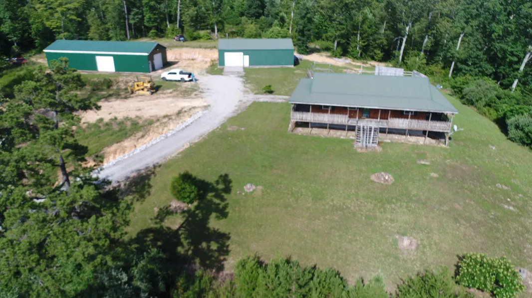 Beautiful Cabin sitting on 6 Acres with 2 LARGE detached garages. Awesome setting joining the 2000+ acre Rockcastle Wildlife Management Area. The cabin has an open floorplan with a bedroom and full bath on each end. Wrap around covered porch and above-ground pool will make you feel like you're on vacation everyday. 30x70 garage has a concrete floor and 220 power, very nice! 30x50 garage has concrete floor.