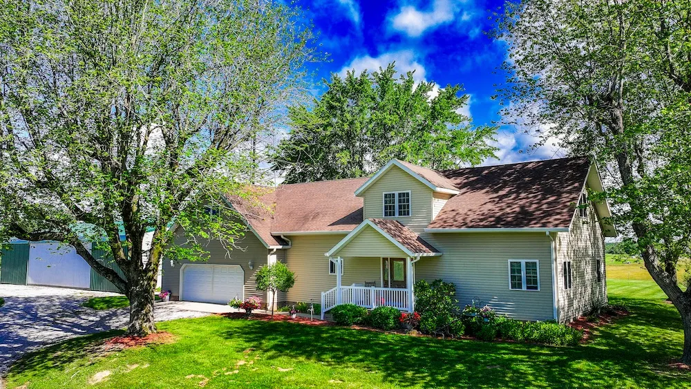 Beautiful 4br,2ba custom Cape Cod home, entering the home, you are greeted by a grand entrance featuring a cathedral ceiling and wooden banister staircase. When entering the living room, you will notice the beautiful tray ceilings and feel the cozy atmosphere. The kitchen is fully custom, showcasing Amish built hickory cabinets and granite countertops as well as a large eat in island. Off of the kitchen, you will find a formal dining room with French doors leading to the back patio, which offers a peaceful view. The main bedroom and bathroom are located on the first floor for convenience and privacy with the main bedroom boasting a large walk-in closet. The master bath features a double sink and walk-in shower. Upstairs, you have the other three bedrooms, all offering plenty of personal space. The second bathroom is also located on the second story and lends its own beauty to a granite vanity and custom tile floor. In addition, there is a large bonus room upstairs that would be perfect for a trophy room or game room and offers a beautiful overlook to the entrance of the home below. The home also offers a finished 2 car attached garage with convenient entrance into the kitchen. Three large pole barns are at your disposal as well, with one set up for livestock, complete with a lean-to, one used for machinery storage, and the third is an absolute gem. This pole barn is fully finished on the inside with laminate wood flooring, finished drywall, bathroom, and kitchen. The possibilities for this building are endless, from income-producing to entertaining. Out back, this property offers a pasture already set up for livestock with a fence system in place. All of this on 7+/- acres in the country but with a short drive to town for the necessities.