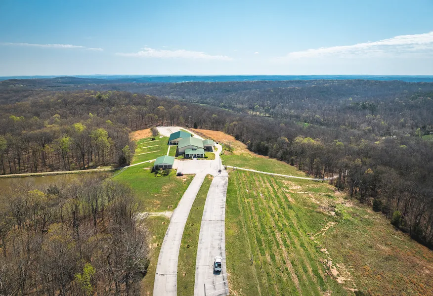 Located just minutes from historic Ste. Genevieve and a little over an hour from St. Louis, this 25.67+/- acre property offers a rare and versatile opportunity in Missouri’s wine country. The tract features multiple custom-built structures, each thoughtfully designed and well-maintained. Building One is a 25' x 34' retail-style structure built in 2004, previously used as a tasting room, with two restrooms and a 25' x 34' unfinished basement. It connects to Building Twoa 95' x 60' building that includes a 35' x 60' main level and a full 95' x 60' lower level, which was formerly used for wine production, a kitchen, office area, and storage.Building Three, known as the Brandy Room, is a finished, climate-controlled 95' x 60' event space built in 2017. It features approximately 5,700 square feet including a large reception area, two restrooms, a prep room, and a full bar setupideal for weddings, receptions, or corporate gatherings. Building Four is a 60' x 30' outdoor pavilion with a 56' x 17' unfinished basement, providing additional space for open-air events.One of the most unique features of the property is the natural cave, which boasts an entrance approximately 100' wide by 35' high. The cave has been improved with gravel flooring, lighting, and seating areas, making it a truly one-of-a-kind spot for private events or peaceful relaxation. A scenic trail winds through the woods, connecting the main buildings to the cave entrance.This property would make an excellent private retreat, wedding and event venue, or even a unique vacation rental destination. With infrastructure already in place and endless potential, it’s ready for someone to bring a fresh vision.