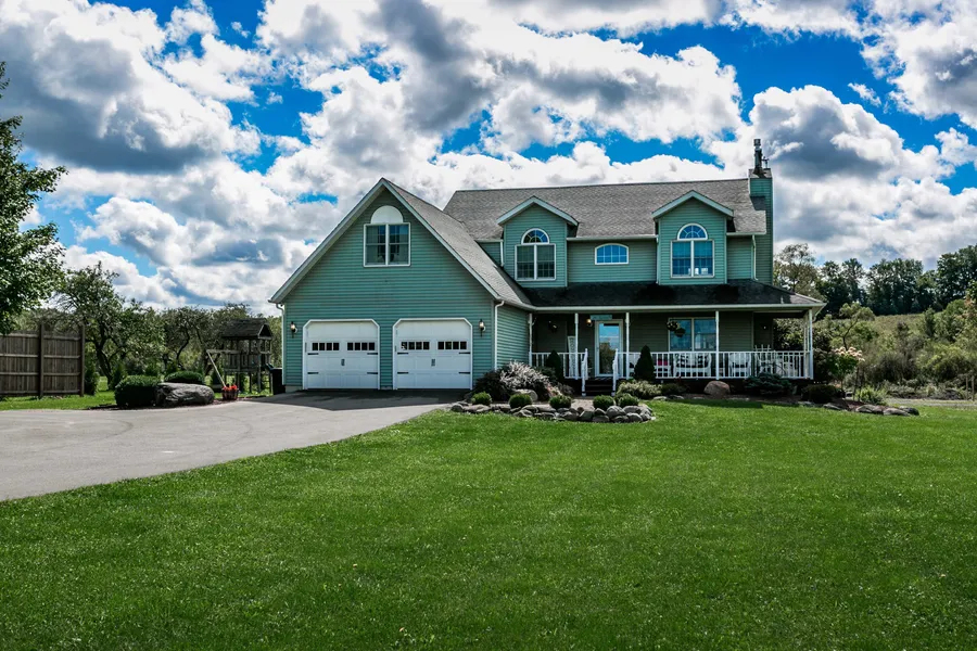 Beautiful 2400 +/- SF Colonial in FM Schools with granite countertop kitchen, open floor plan, and 3 lg bedrooms w. potential for a 4th in bonus room (included in SF calculations). 2.5 baths and second floor laundry. Large 2 car garage and partially finished basement. This home is great for a large family and for entertaining with the relaxing back deck! The screened in back porch allows for additional space. Or, relax on the open country front porch. Featuring an ultra efficient heat pump system. Also includes a spacious 36x64 pole barn, fully insulated w. radiant in floor heating & a high efficiency boiler, 14'14' overhead doors, 22' high walls and 1000 sf enclosed mezzanine for home office or game/exercise room. Ideal for a car/hobby enthusiast or to park a full sized RV inside. 10' covered porch too! All this situated on 5 acres large enough for horses, hiking, and enjoying. Manicured and well maintained yard. Enjoy all country living has to offer, just a short distance from the Village! Delayed showings until 9/18/21.